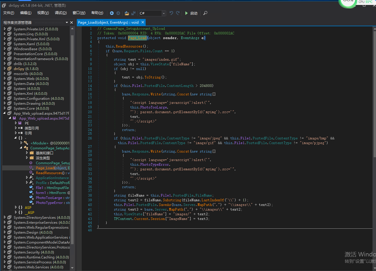 也没有发现什么鉴权的函数之类的。那么再往上找一层 发现他引用了App_Web_global.asax.cs.cdcab7d2 这个。那么把dll文件丢进去